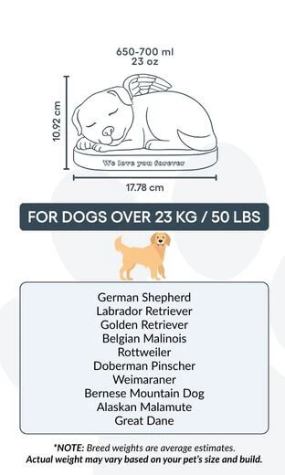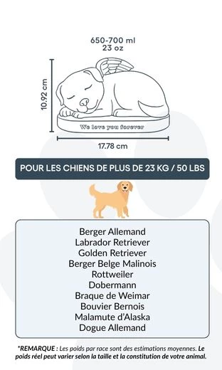 Placée au pied d’un arbre, dans un parterre fleuri ou près d’une tombe familiale, cette urne ange pour chien offre un souvenir réconfortant et intemporel, rappelant chaque jour le lien unique qui vous unit à votre compagnon à quatre pattes.