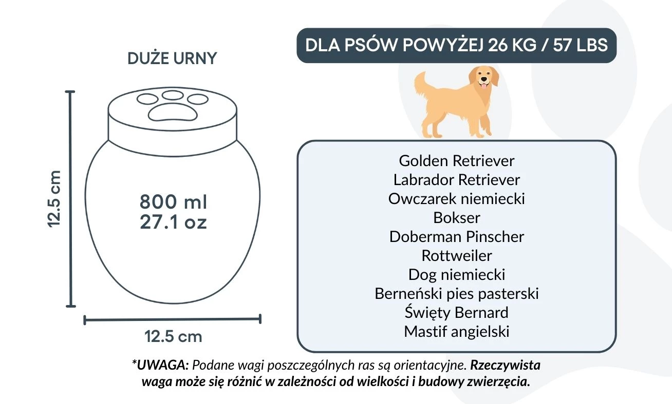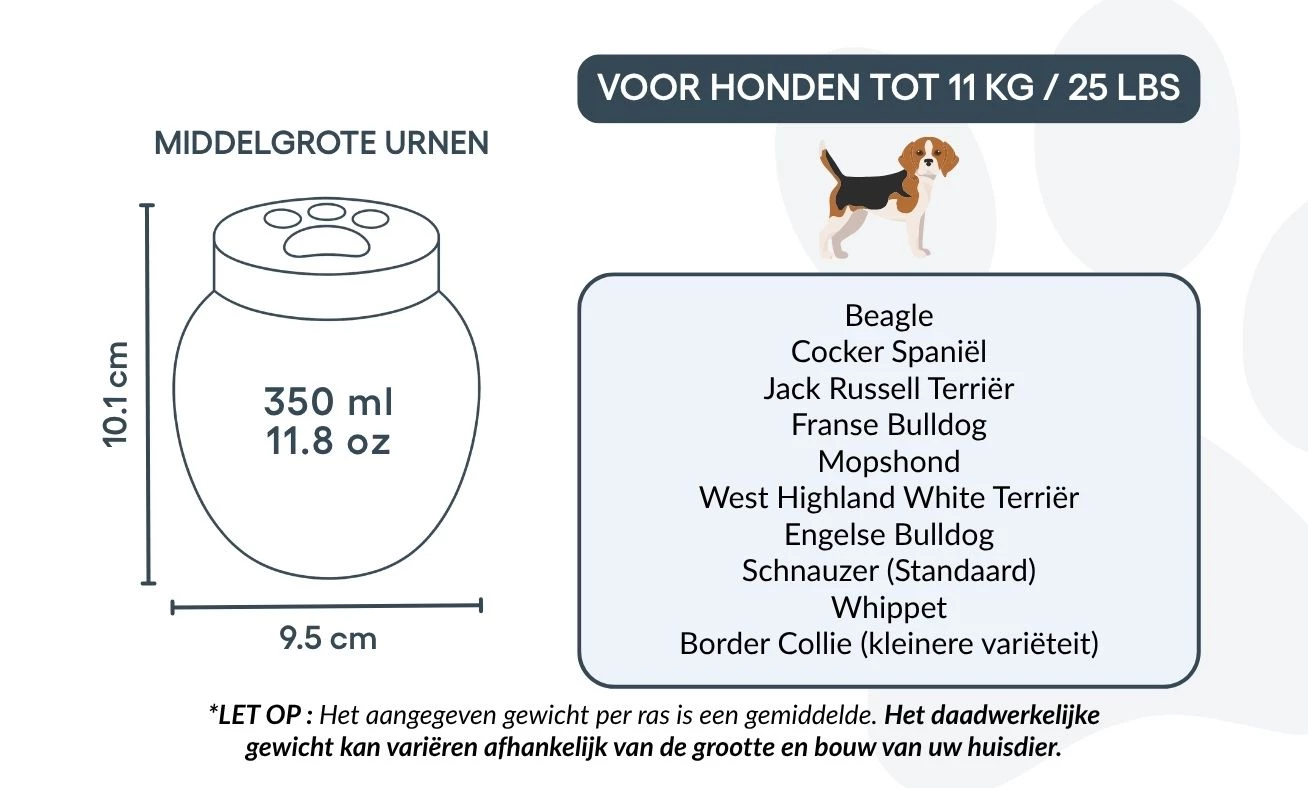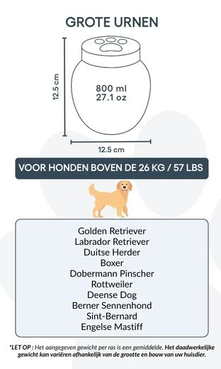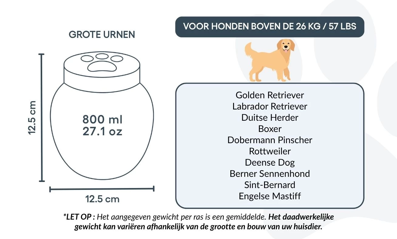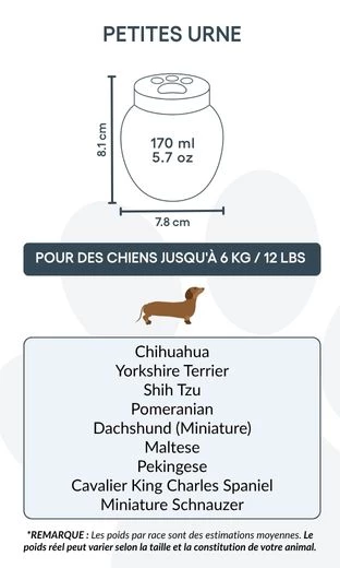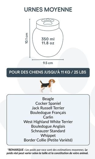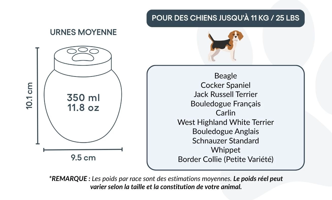 Disponible en plusieurs tailles, cette urne photo personnalisée convient à toutes les races de chiens et permet de préserver la mémoire d’un être cher avec dignité et amour.