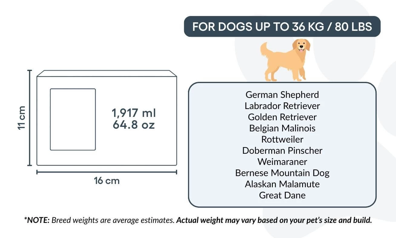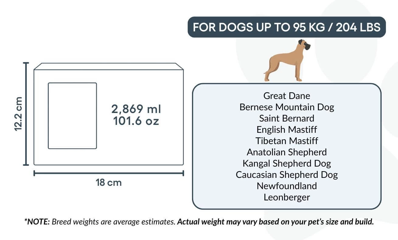 Remarque : les estimations de volume sont basées sur le poids moyen des cendres après crémation. Veuillez tenir compte du gabarit et du poids de votre animal avant de choisir une urne.