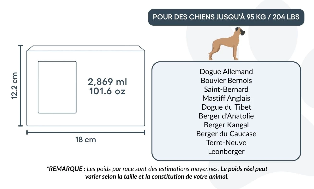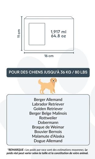 Exemples de races adaptées : Jack Russell Terrier, Pékinois, Carlin, Boston Terrier, Shih Tzu, Schnauzer nain, Cavalier King Charles, Bouledogue français.