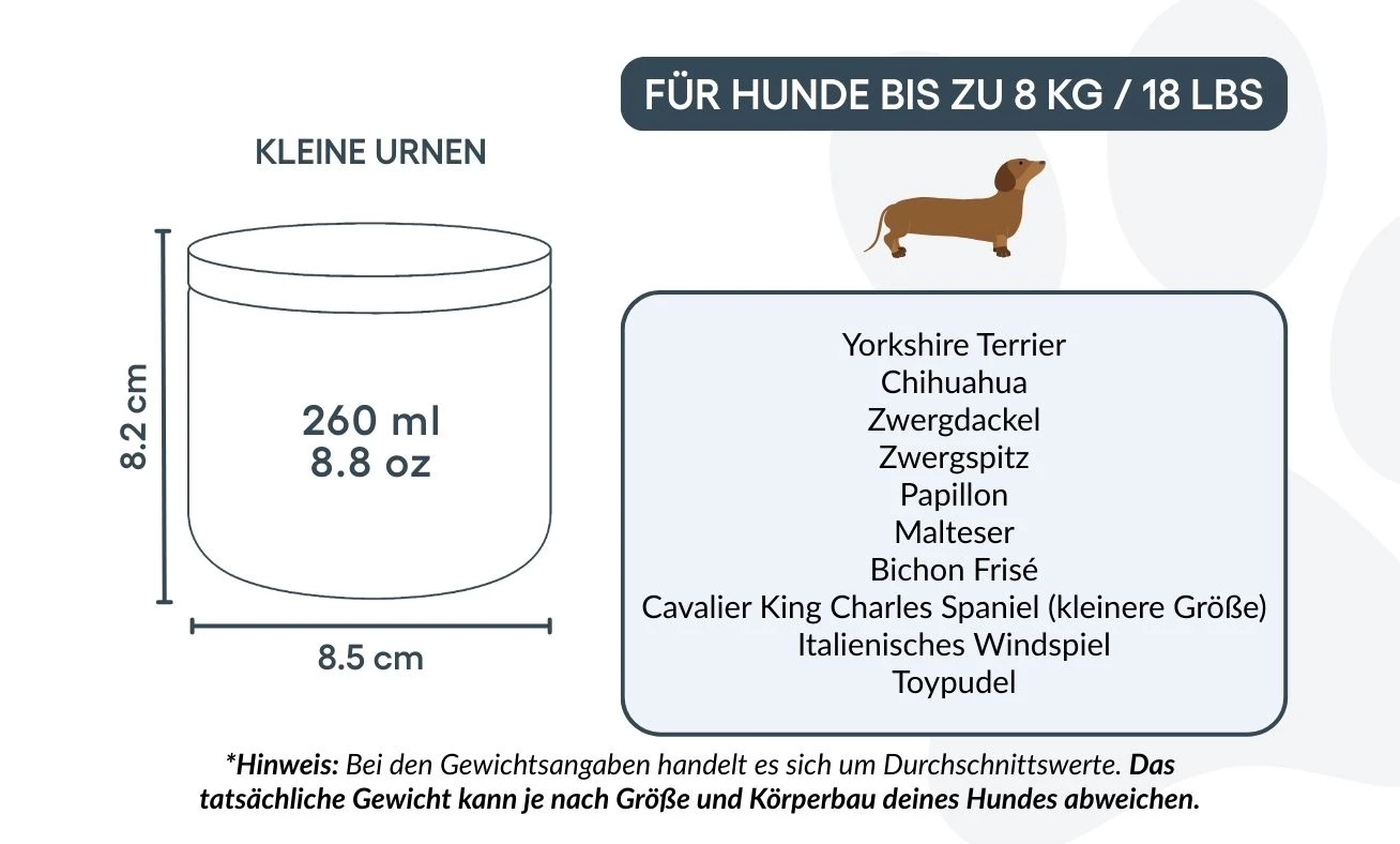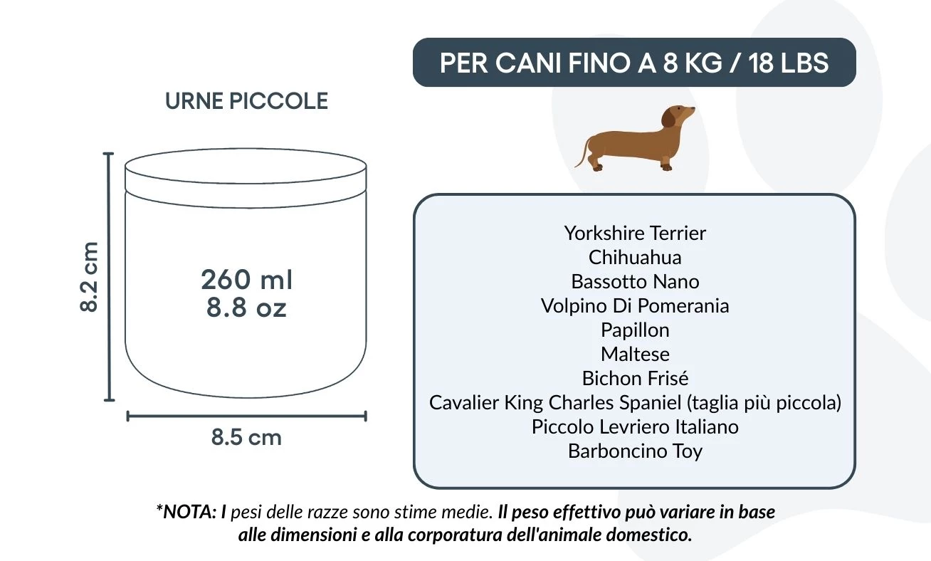 Adaptée aux petits et moyens chiens, cette urne n’est pas qu’un simple contenant : c’est un souvenir précieux, symbole du lien unique entre vous et votre compagnon. Placée sur une étagère, une table ou dans un coin commémoratif, elle vous permet de garder sa mémoire vivante jour après jour.