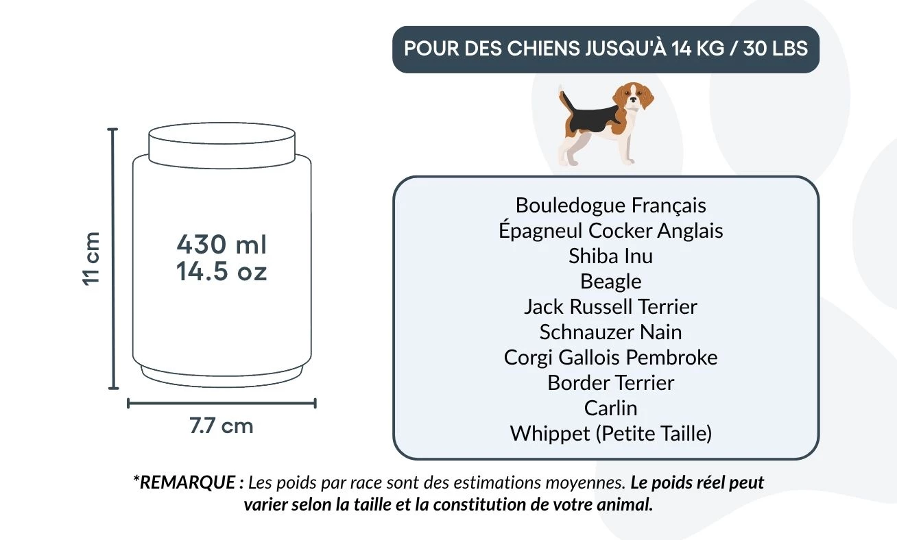 Convient pour les chiens jusqu’à 14 kg / 30 lbs