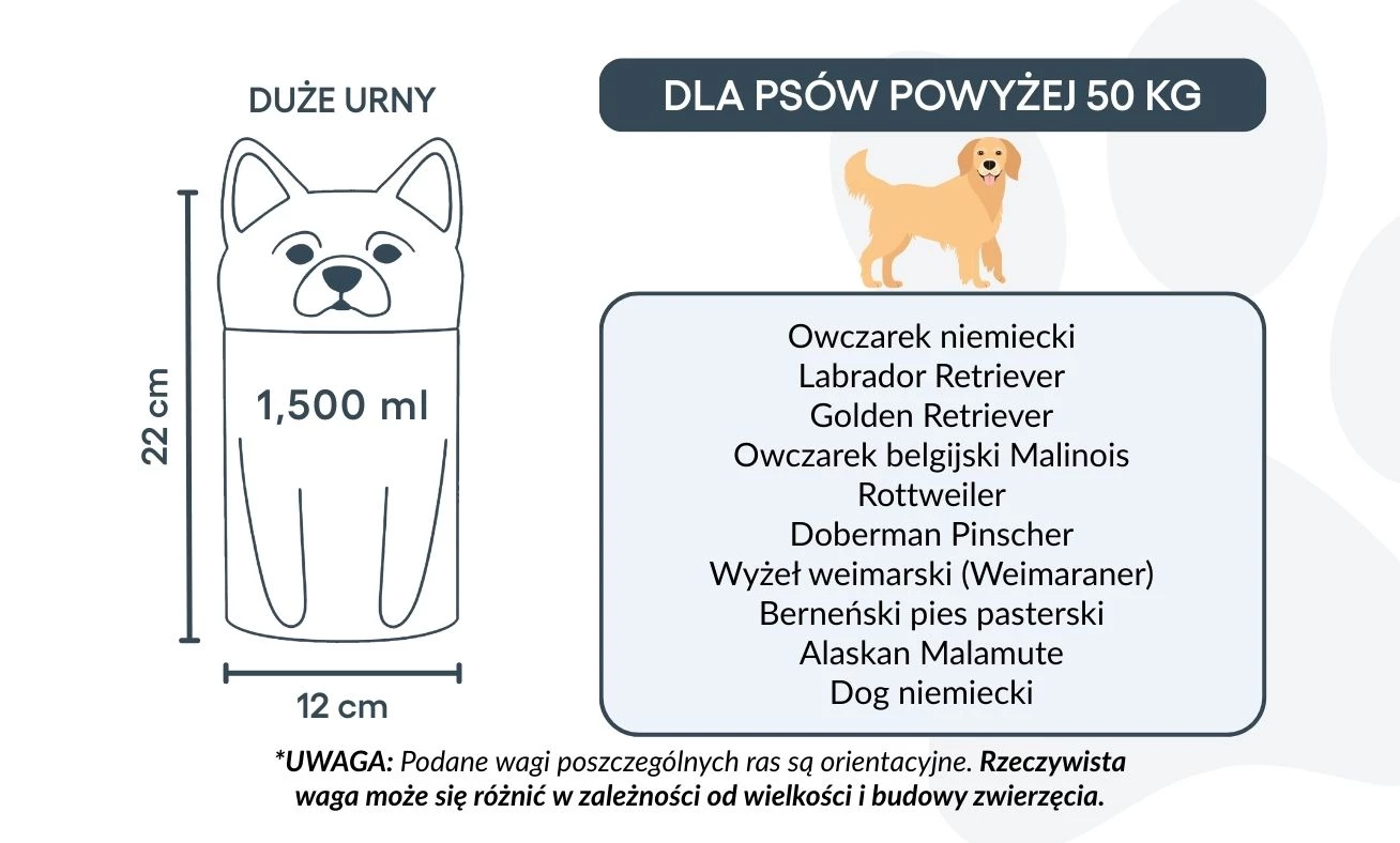 Disponible en trois tailles pour chiens jusqu’à 50 kg, cette urne funéraire personnalisée peut également être gravée avec un texte ou un message commémoratif. Son design stable et sécurisé garantit la protection des cendres, tandis que sa présentation élégante en fait un bel hommage intérieur pour célébrer la mémoire de votre animal.