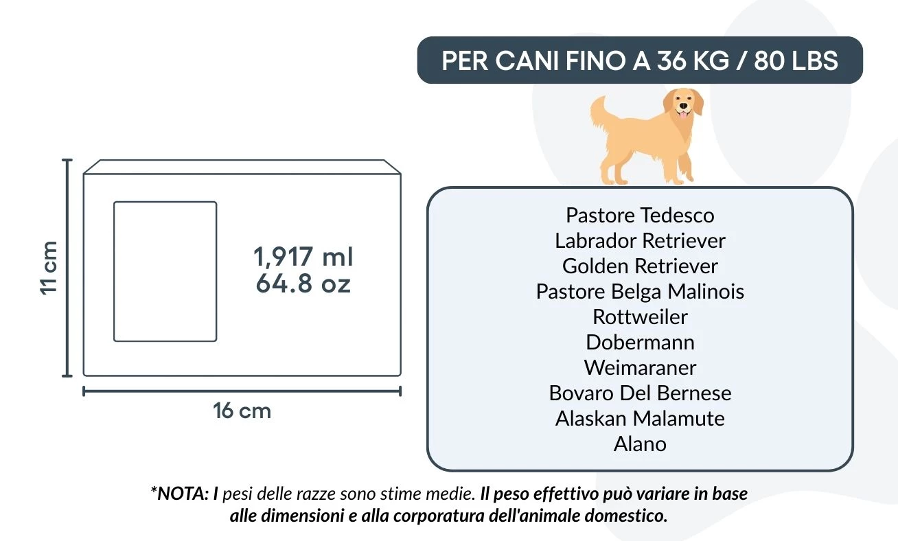 Convient pour les animaux jusqu’à 36 kg / 80 lb