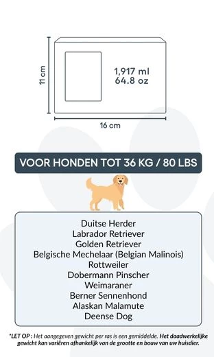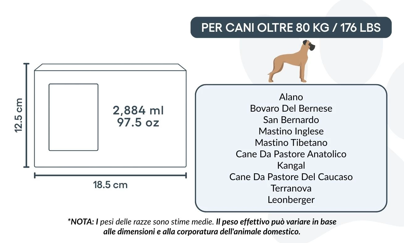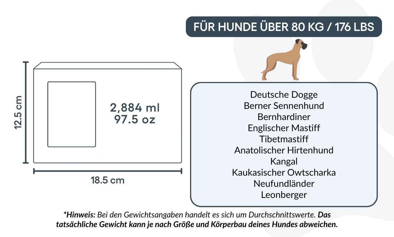 Avec sa grande capacité (~2 869 ml), cette urne funéraire convient aux chiens de taille moyenne à grande, tels que le Labrador, le Berger Allemand ou le Golden Retriever.